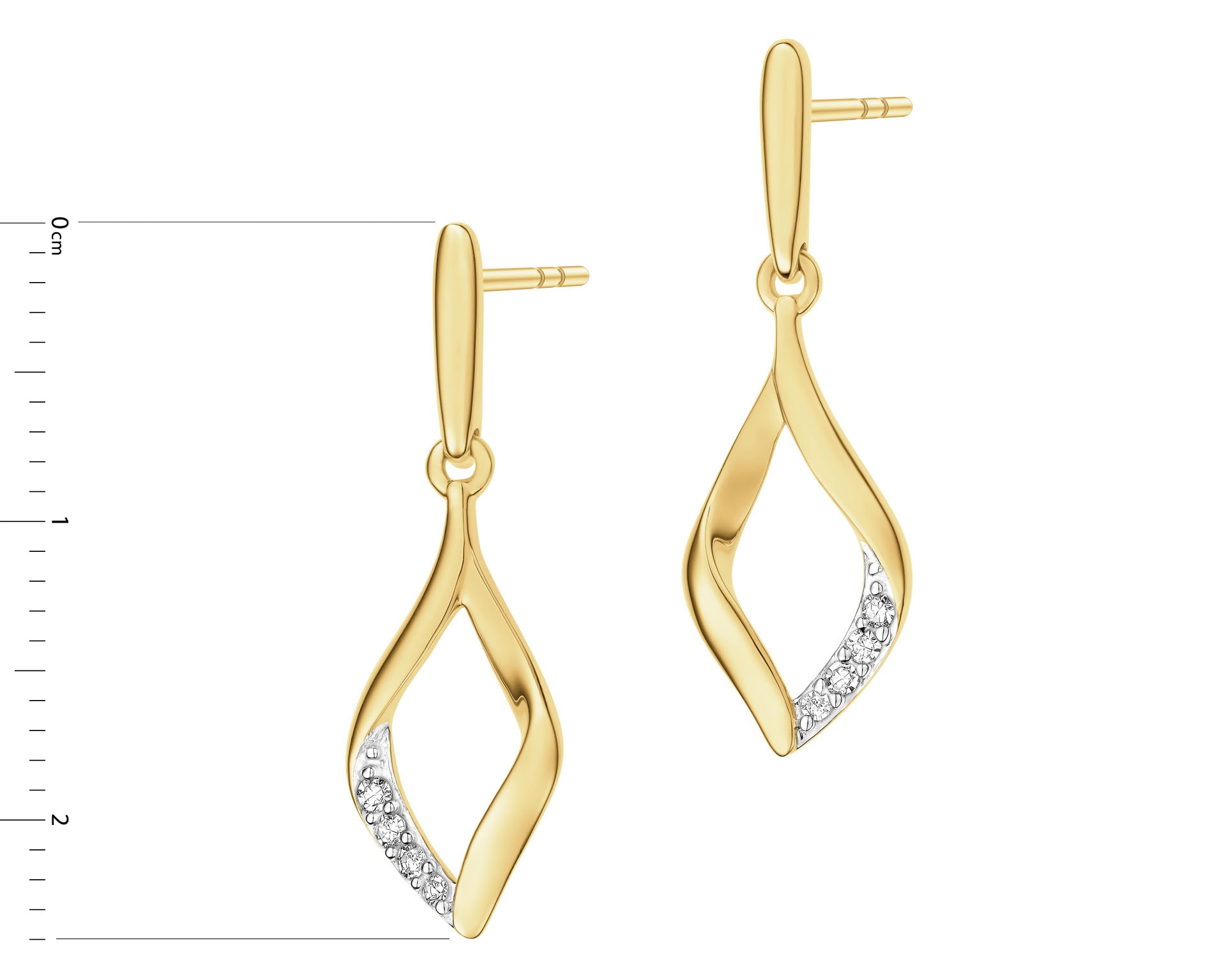 14 K Rhodium-Plated Yellow Gold Dangling Earring with Diamonds - 0,05 ct - fineness 14 K