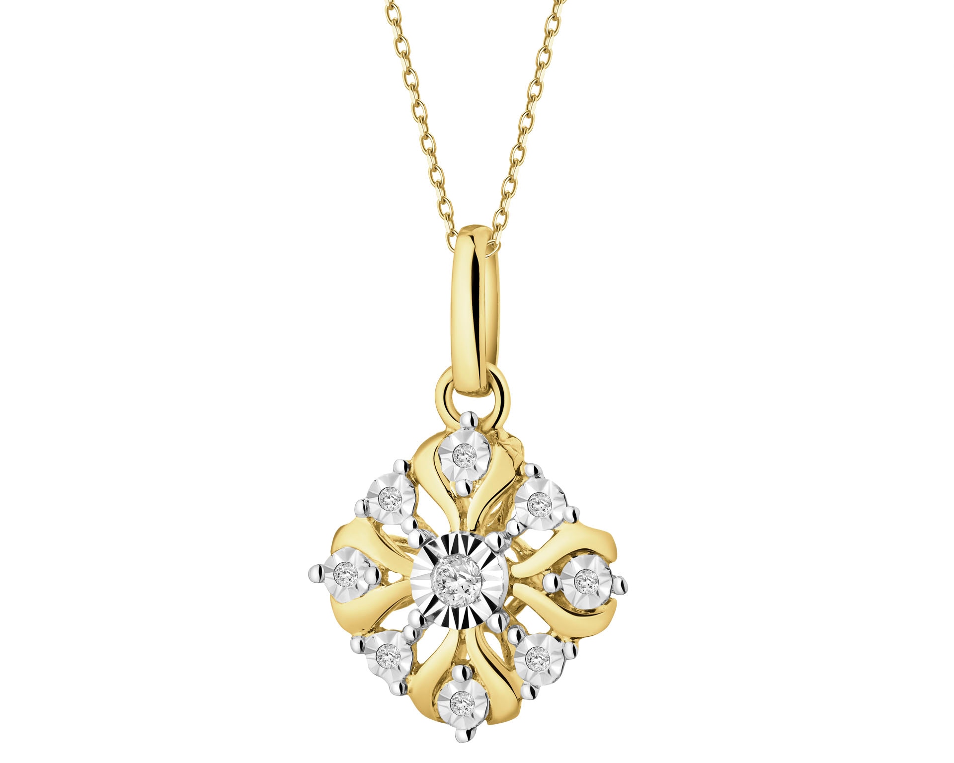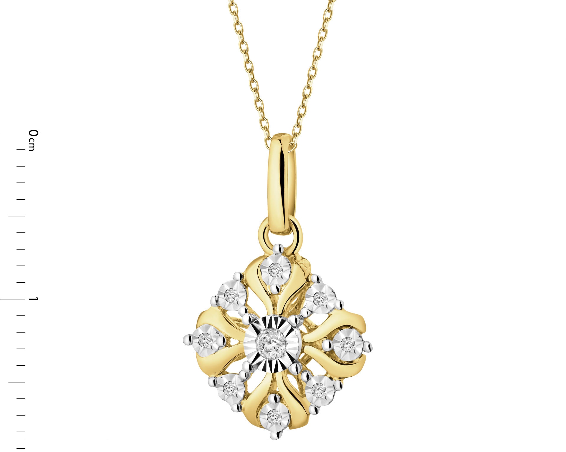 14 K Rhodium-Plated Yellow Gold Necklace with Diamonds - 0,07 ct - fineness 585