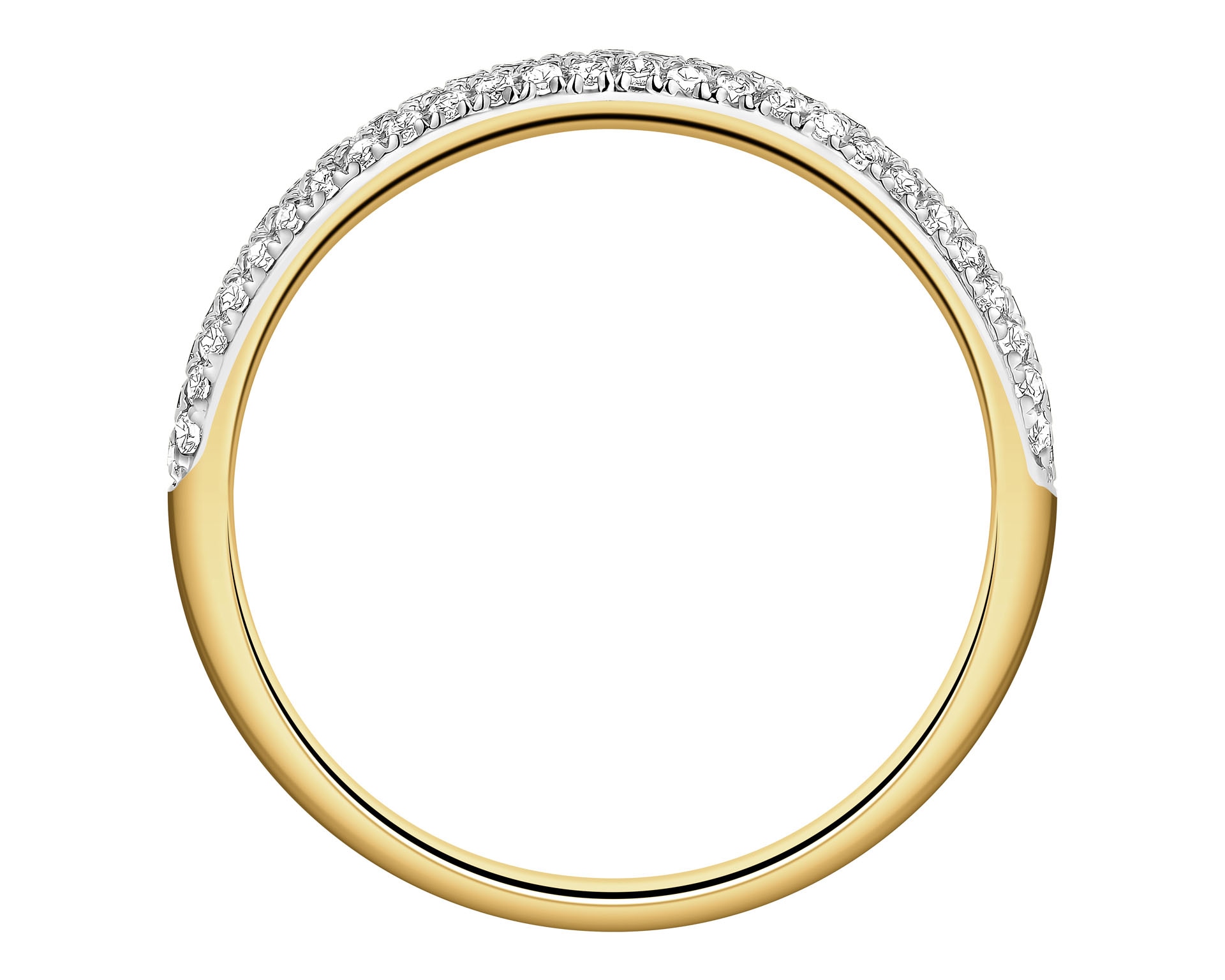 A sleek wedding band-like engagement ring made of gold with diamonds. Meticulously crafted in yellow gold, the minimalist ring features a harmonious composition of dazzling diamonds. Notable for the jeweler’s painstaking attention to detail, this modern ring emanates great style with a veneer of sophistication. It is an obvious choice for all fans of discreet diamond jewelry.