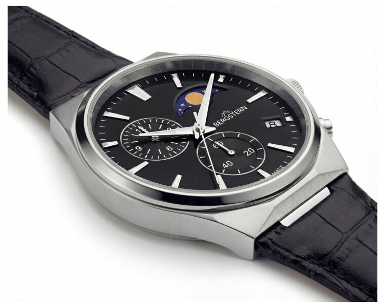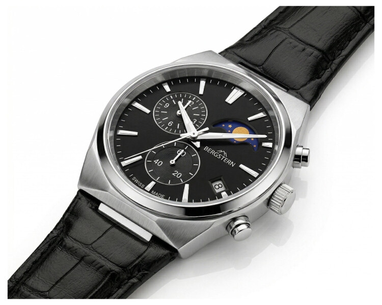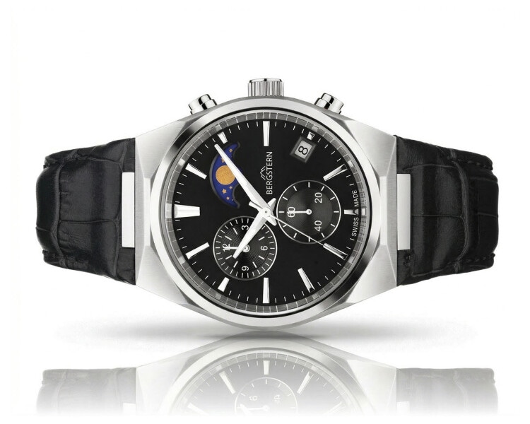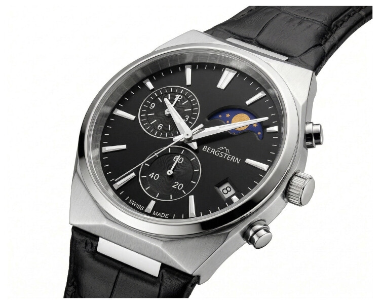Features: chronograph, date, analogue, moonphase indicator, small seconds, battery indicator, Swiss made