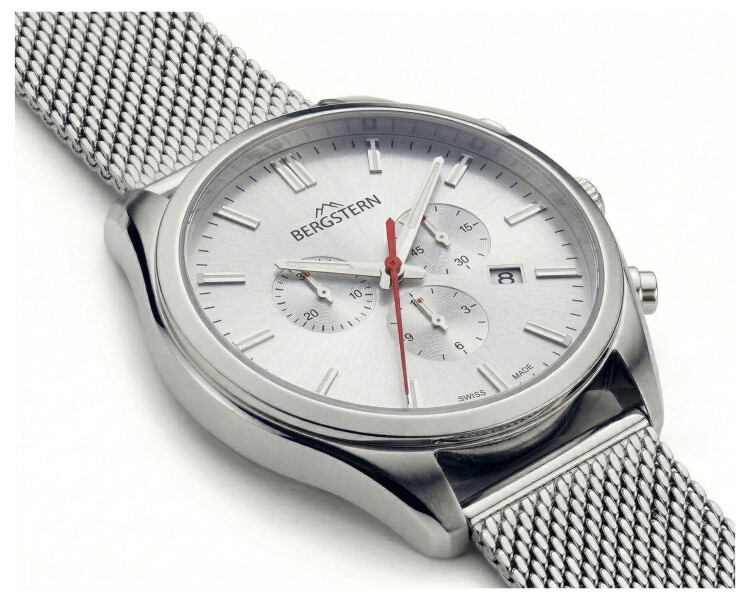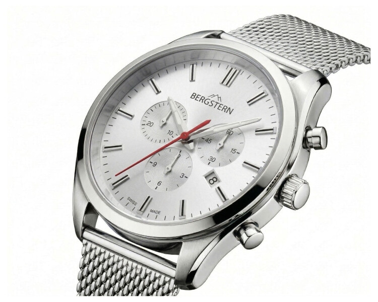 Features: chronograph, date, analogue, small seconds, Swiss made